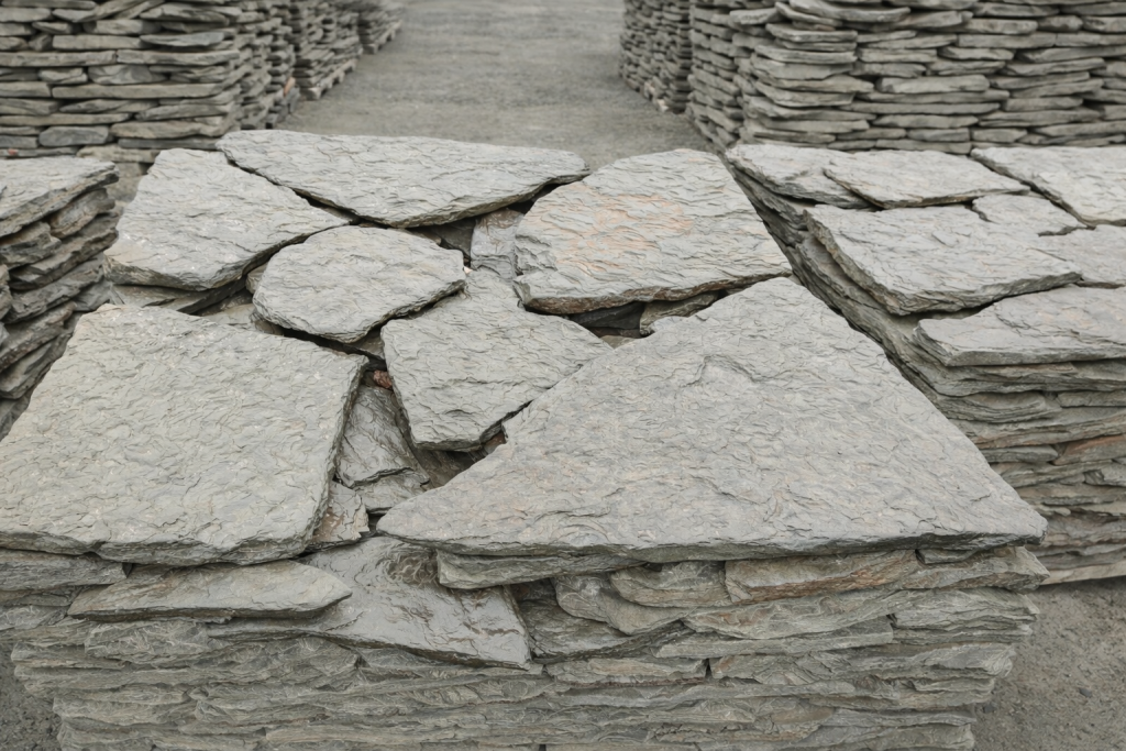 Плитняк песчаник дракон серо-зелёный галтованный для облицовки цоколя, отмостки 20-35 мм